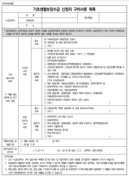 ◎ 제출 서류 안내 : 신청서, 구비서류 이외에 추가로 제출해야 할 서류 및 제출기한 등을 안내